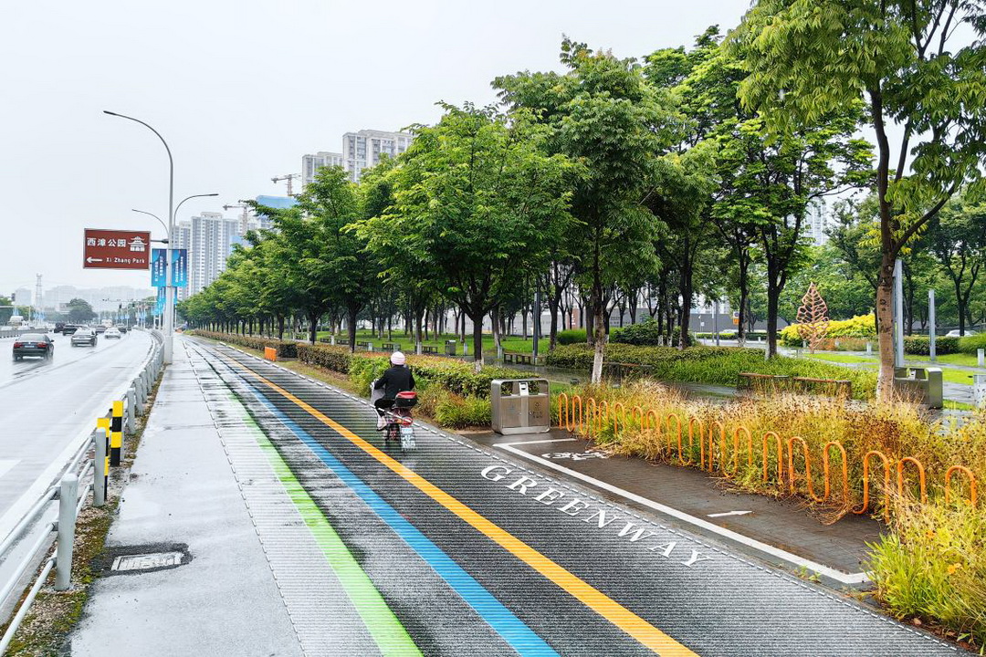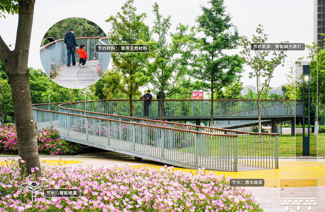 以彩化的綠道標(biāo)識,展示景觀主軸的速度感與韻律感。