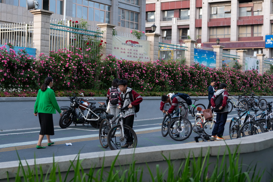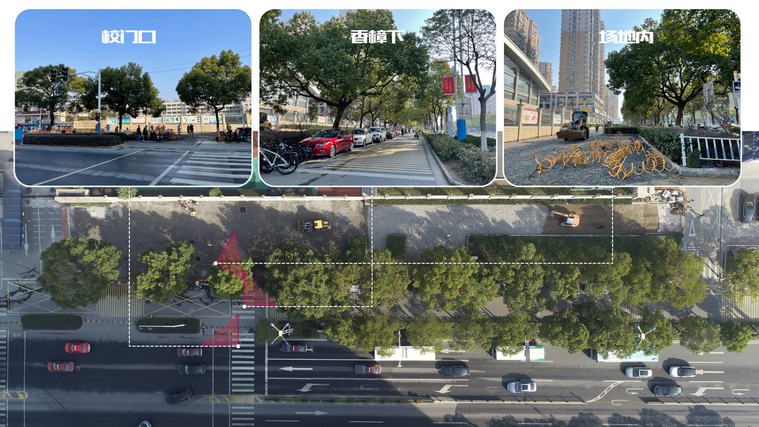 通過(guò)深入調(diào)研分析,七中師生有很較大的非機(jī)動(dòng)車(chē)停車(chē)需求、上下學(xué)瞬時(shí)大流量的集散需求以及家長(zhǎng)接送的等候休憩需求。設(shè)計(jì)尊重師生家長(zhǎng)的使用習(xí)慣,思考在這樣百米長(zhǎng)的線(xiàn)性空間內(nèi),如何合理高效解決停車(chē)、導(dǎo)入游憩與美化界面問(wèn)題。