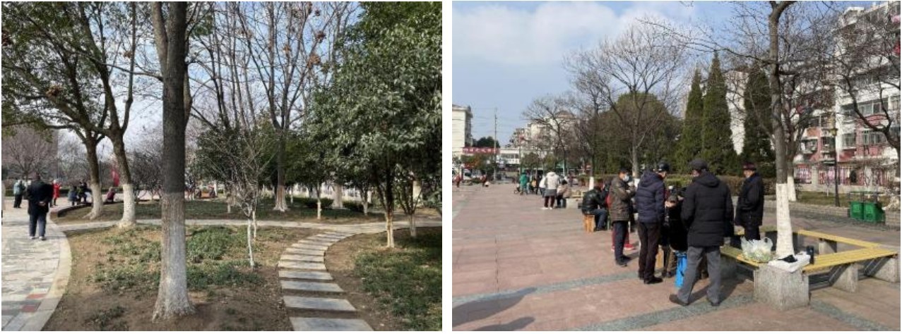 康樂游園建成后正是暖春,林下健身區(qū)設置了較開闊的林下空間與大量休憩設施,成為了老幼慢行活動的最佳場所。象棋對弈、打摜蛋總會吸引一群又一群人圍觀;春風亭、康樂亭里時不時傳來悠揚的胡琴笛聲,老人們合奏《送別》《送戰(zhàn)友》等經(jīng)典老歌,悠悠飄蕩。