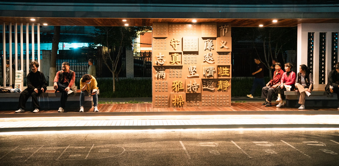 設計以“千字文”為主題,運用在廣場鋪裝和休憩亭廊設計中,既以雅致簡約的風格裝點了空間,又起到科普教育的作用,使該空間充滿人文氣息。